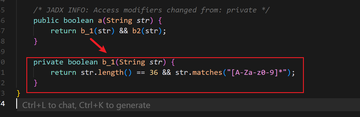 b-1 方法检测字符串长度是否是 36 且必须在 A-Z a-z 0-9 范围内。