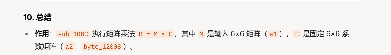 sub_F1C 对 v6 进行操作,v6 就是 sub_D60 函数的结果,是一个 6*6 的矩阵。